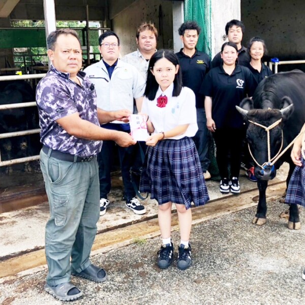 JAおきなわ宮古地区畜産振興センターは7日、平良下里の宮古総合実業高校第2農場を訪れ、11月に糸満市で開かれる第51回県畜産共進会に出品する同校生物生産科生徒らの挑戦へ激励金を贈呈した。