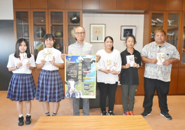 糸満市の南部家畜市場で11月1日に開催される第51回県畜産共進会に向けて7日、市役所で出品者奨励金授与式が行われた。