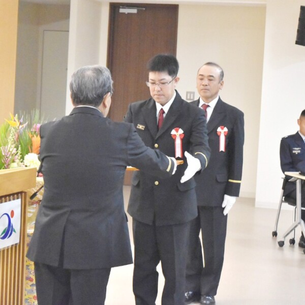 2026年宮古島市消防出初式が11日、市役所2階大ホールで行われ、消防職員や消防団員、関係者らが出席し、新春の節目に市民の生命と財産を守る決意を新たにした。