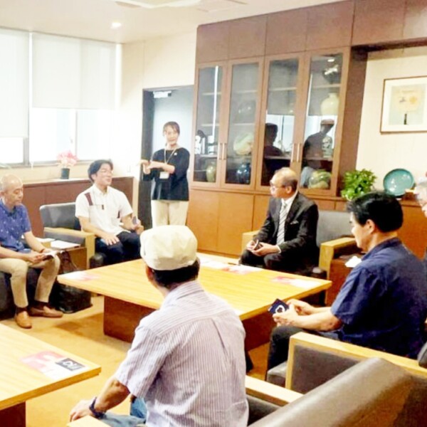 みやこ翼の会の花城千枝子会長らは26日、活動報告のため市役所に嘉数登市長を表敬した。