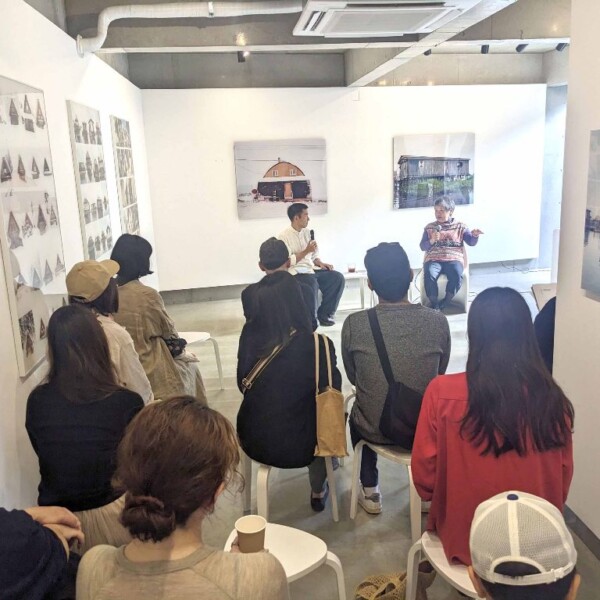 19日まで平良下里のパリギャラリーで開催されている写真展「家のかたち」の写真家石川直樹さんと女性一級建築士宮古島第一人者の伊志嶺敏子さんの対談が4日、同所で行われた。