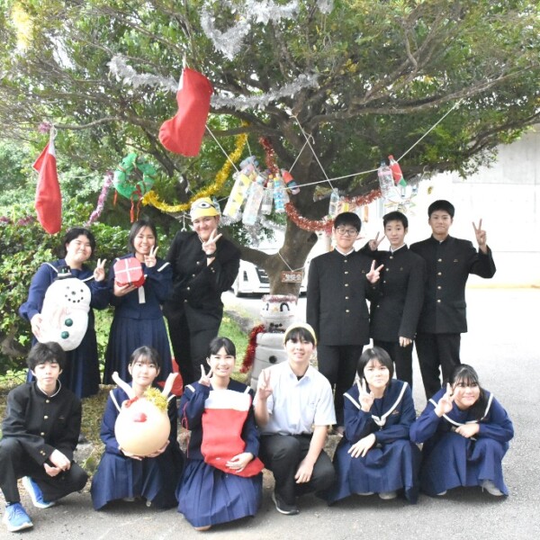 北中学校生徒会(松川久麗杏会長)は20日、同校中庭にある木をクリスマス仕様に飾り付けた。
