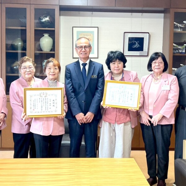 2025年県赤十字大会の宮古島市区の受章者らは27日、市役所に嘉数登市長を訪ね報告会を行った。