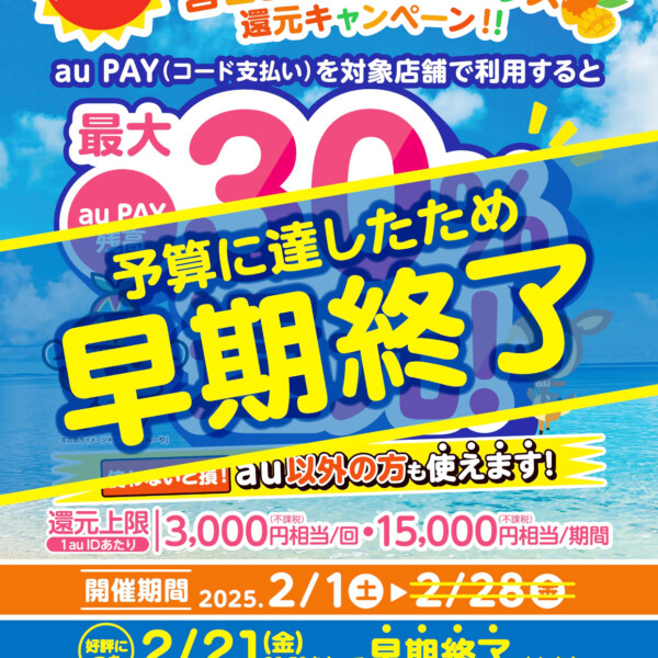 市が実施中の第2弾「宮古島市キャッシュレス還元キャンペーン」が、予定より早く終了することが決定した。