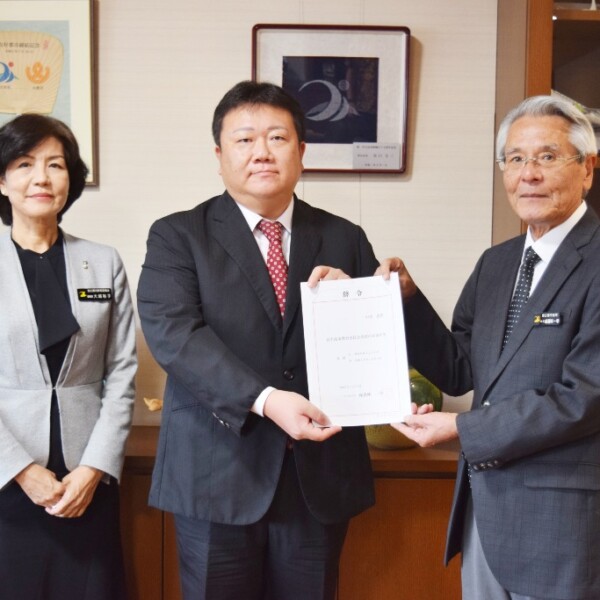 中尾氏に辞令交付 市教委再任 知識と経験に期待
