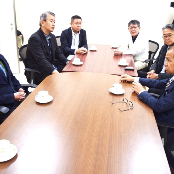 県建設業協会宮古支部の友利勝人支部長を含む9人は3日、市役所に嘉数登市長を訪ね、家賃高騰や空き家活用、私有地の活用など、島内で発生している問題について協力の申し出を行った。