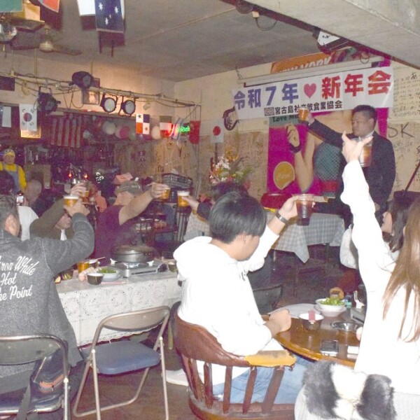 宮古島社交飲食業生活衛生同業協会(奥平玄信会長)は12日、平良西里の飲食店で毎年恒例の新年会を開催した。