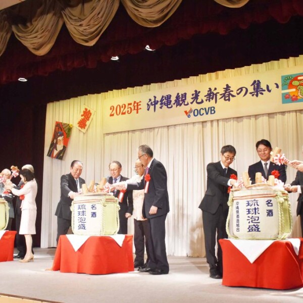 【那覇支局】2025年沖縄観光新春の集い(主催・沖縄観光コンベンションビューロー=OCVB)が6日、那覇市のパシフィックホテル沖縄で催され、約800人が参加し、沖縄観光の成長や発展を祈願した。