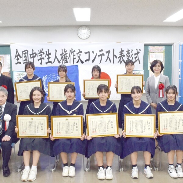 宮古島人権擁護委員協議会(宮国芳美会長)は18日、平良地方合同庁舎で第43回全国中学生人権作文コンテスト沖縄県大会宮古地区表彰式を開催した。