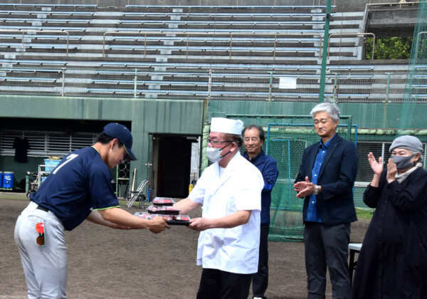 西城小学校69期、西城中学校(現・城東中学校)32期の卒業生で今年還暦を迎える同窓会(前里和羊会長)は2日、両校に寄付金を贈呈した。