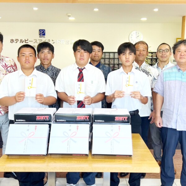平安秀昭代表取締役率いるピース企画およびピースアイランドホテルグループは31日、宮古高校、宮古総合実業高校、宮古工業の3校に対し、硬式ボール5ダースと金一封を寄贈した。