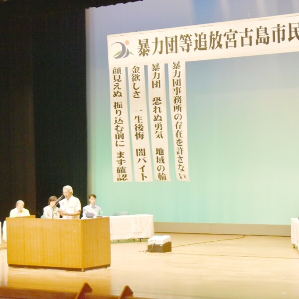 宮古島市や市教委、宮古島署などが主催する「暴力団追放宮古島市民総決起大会」が29日、マティダ市民劇場で行われた。
