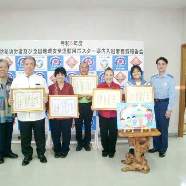 2024年度防犯功労者および全国地域安全運動ポスターの部の県内入選者受賞報告会が1日夕、宮古島警察署で行われた。