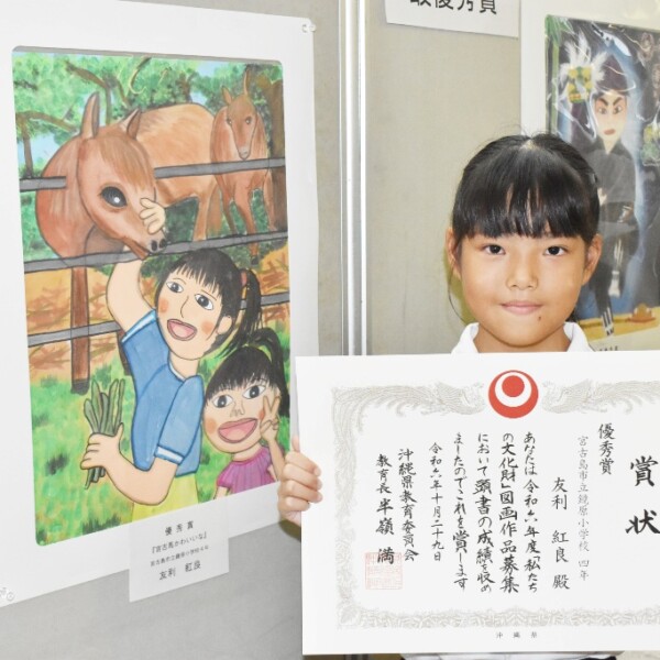 友利さん(鏡原小4年)が優秀賞 「私たちの文化財」コン 宮古馬との触...