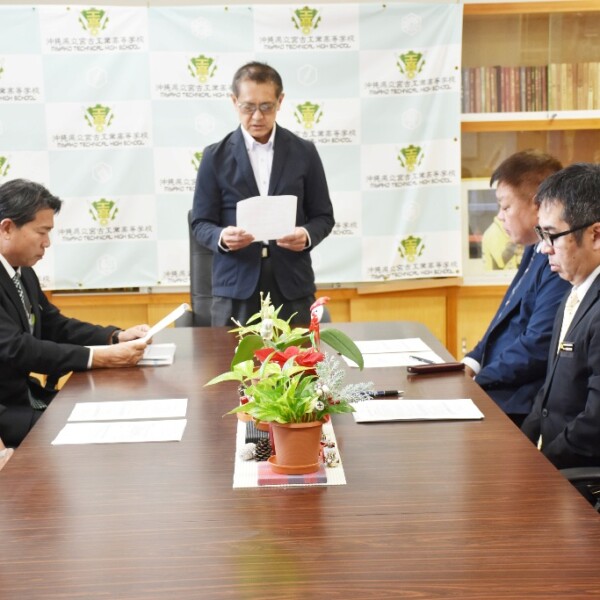 宮古地区県立学校PTA連合会(下里善盛会長)、宮古地区県立学校校長会(喜納兼信会長)、宮古地区高等学校生徒指導連絡協議会(松原芳和会長)は16日、「冬季休業中における問題行動未然防止」にむけたアピールを行った。