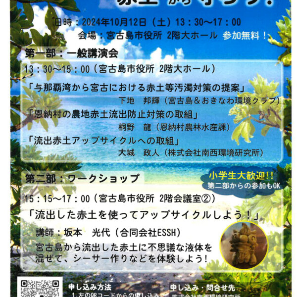 市環境保全課は12日、市役所で「宮古島の海を赤土から守ろう!」と題した講演会とワークショップを開催する。
