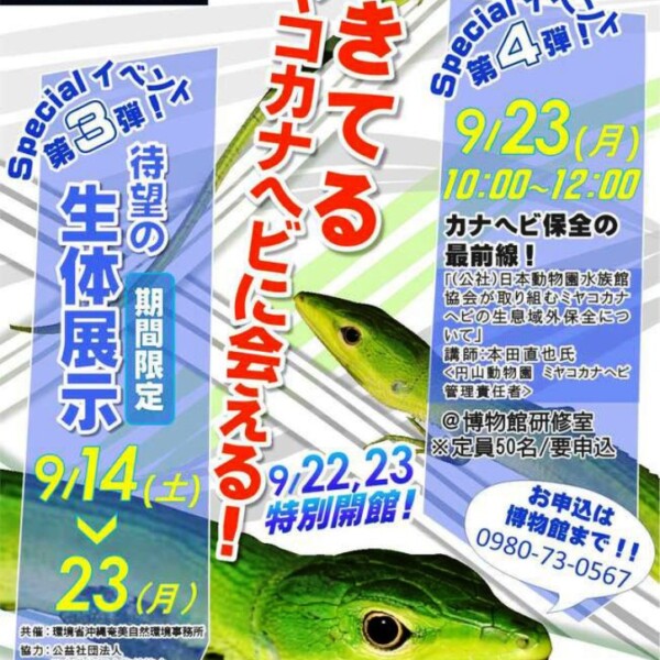現在「ズミ!宮古の生き物展」を開催している市総合博物館ではその一環として、今月14日から23日まで、宮古島固有の生物であるミヤコカナヘビの生体展示が行われる。