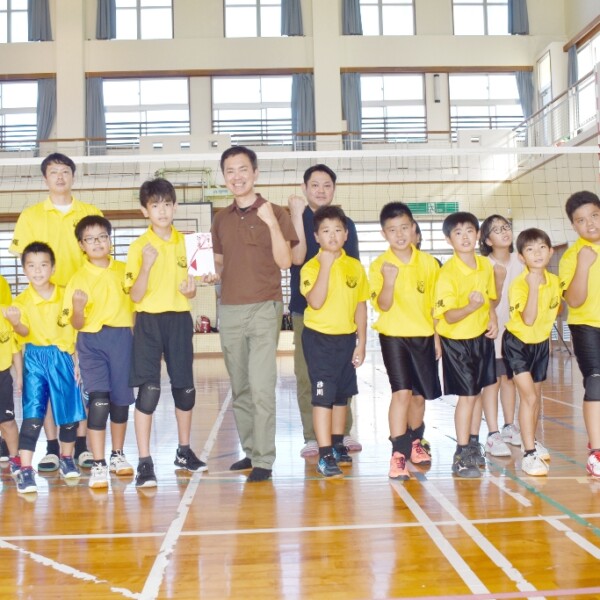 医療福祉や不動産業などを営む縁(前里直也代表)は10日、8月23日から佐賀県で開催される全九州小学生バレーボール優勝大会に出場する男子バレーボールクラブ「砂川イエローユナイト」(前泊克彦監督)に激励金を贈呈した。