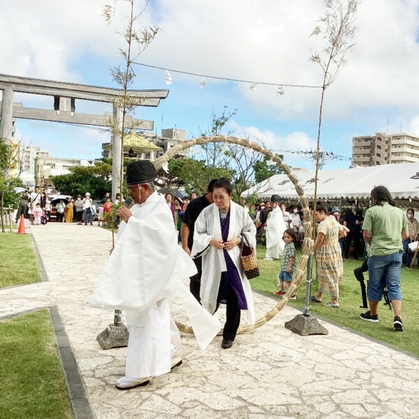 平良西里の宮古神社で6月30日夕、半年ごとの罪などを払い清める神事「夏越の大祓(おおはらえ)」が行われた。
