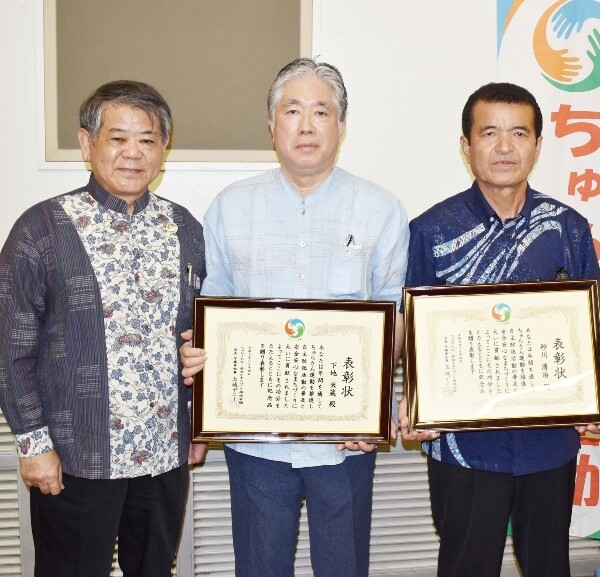 下地、砂川さんを表彰 安全なまちづくり功労者 防犯活動などたたえ
