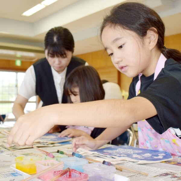 下地公民館で15日、地域の児童と保護者らを対象とした手染め紅型(びんがた)講座が開催された。