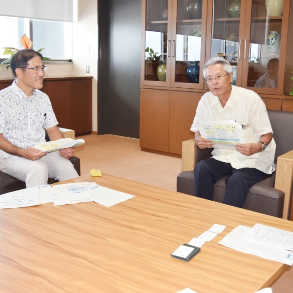 沖縄総合事務局の星明彦運輸部長が14日、市役所に座喜味一幸市長を訪問し、タクシーが不足する地域・時期・時間帯でタクシー事業者が遊休タクシーや一般ドライバーを活用した運輸サービスの「日本版ライドシェア」について説明した。