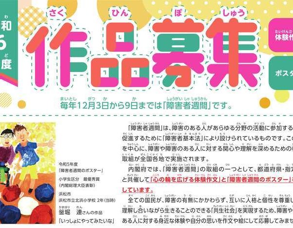 2024年度「障害者週間」に合わせて内閣府が実施する「心の輪を広げる体験作文」と「障害者週間のポスター」の作品募集が、全国の小学生から一般までの幅広い層を対象に行われている。