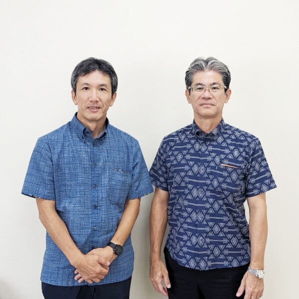4月1日付で日本航空(JAL)沖縄支店長兼日本トランスオーシャン航空(JTA)執行役員販売部門長に就任した中根雅典氏らが5月30日、宮古新報社を訪れた。