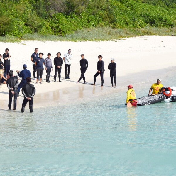 宮古島海上保安部と琉球水難救済会は3日、下地与那覇の前浜港付近で救難合同訓練を実施した。