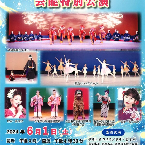 きょう1日午後4時半からマティダ市民劇場で県立芸大OB有志の会と飯島バレエスクール主催の「芸能特別公演」が開催される。