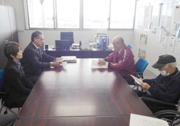 城辺トレーニングセンターの解体を巡り、旧城辺町議会議員勇志会(友利光徳代表)らが15日、市役所を訪れ、宮城克典教育長に対し住民説明会の開催を求める要請を行った。
