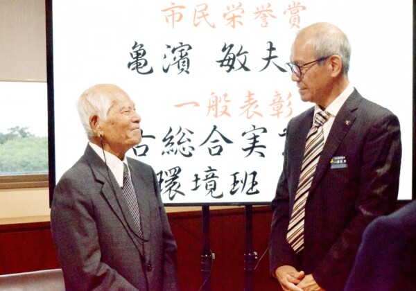 宮古島市は100歳でクラス別100㍍走の世界新記録を樹立した亀濱敏夫さんに対し、市制施行以来初となる「市民栄誉賞」を授与した。