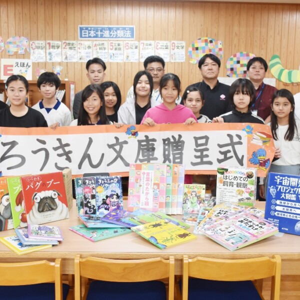 沖縄県労働金庫宮古支店(内間陽大支店長)の会員らで構成するろうきん宮古地区推進委員会(久貝七恵委員長)が25日、平良第一小学校(與那覇盛彦校長)に本44冊を贈った。