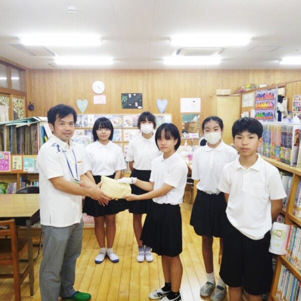 砂川小学校(下地操校長)はこのほど、市社会福祉協議会(野原勝会長)に2023年度赤い羽根学童募金を寄付し、贈呈式を同校図書室で執り行った。