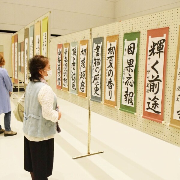 「第11回蒼海書道展」(主催・蒼海書道会)が23日、市未来創造センター多目的ホールで始まった。