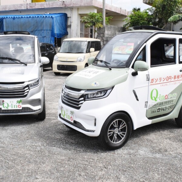 今年1月から1人乗り電気自動車「Q-in(クイナ)」の販売を開始したイージス沖縄(金城憂志社長 本社・那覇市)は16日、平良下里の五光自動車商会で展示および一般公道の走行を行い、島内でPRした。