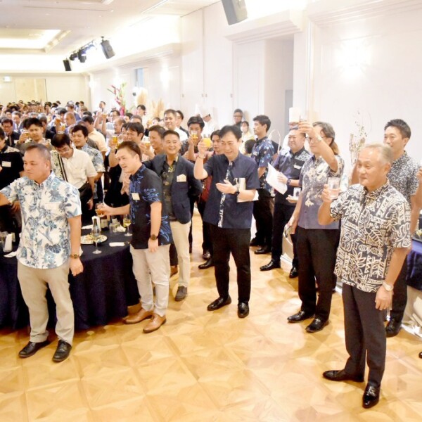 南西楽園リゾート主催の「第17回レインボー会」が14日夜、上野宮国のホテルで開かれ、取引企業や関係者ら336人が集い、同社の歩みを振り返りながら交流を深めた。
