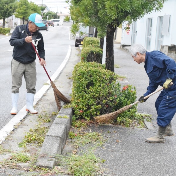 会員ら美化活動 工業高校通り会 歩道のごみ取り除く