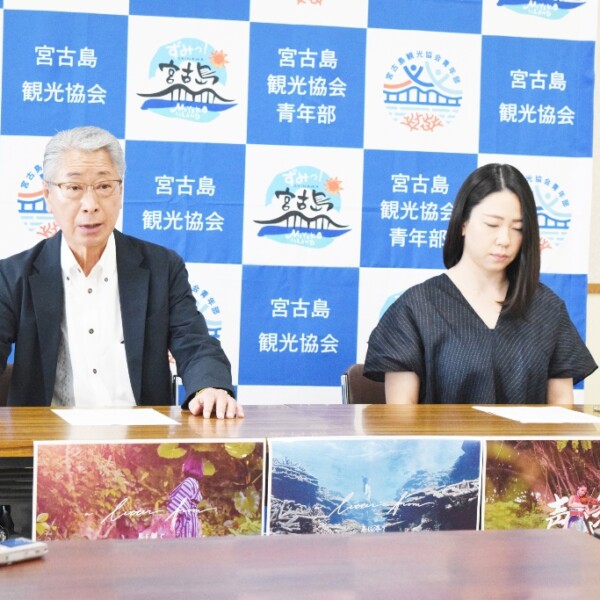 宮古島観光協会(吉井良介会長)は13日、下地上地の観光協会会議室で「持続可能な観光PR映像公開」の発表会見を行った。