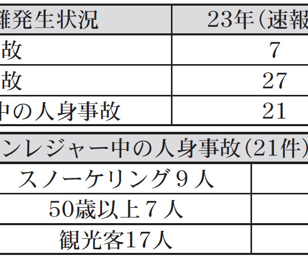海の事故人身27人、船舶7隻 23年宮古島管内 レジャー、観光客が増加