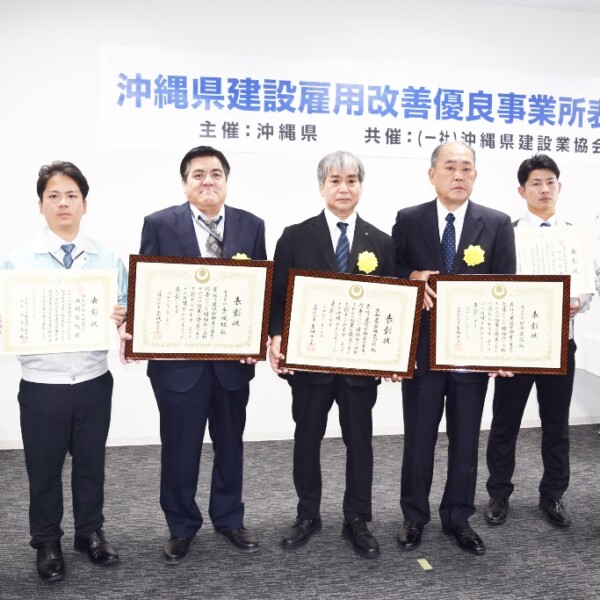 【那覇支局】2023年度県建設雇用改善優良事業所表彰式が30日、那覇市のグッジョブセンターおきなわで催された。
