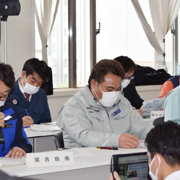 【那覇支局】2023年度県国民保護共同図上訓練が30日、県庁で行われ、その中で宮古島市、多良間村など先島5市町村が参加した関係機関等連絡調整会議運営訓練が実施された。