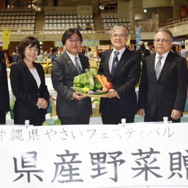 【那覇支局】県やさいフェスティバル実行委員会(前田典男会長)は21日、那覇市奥武山公園内の県立武道館で、おきなわこども未来ランチサポートに県産野菜約250箱分を贈呈した。
