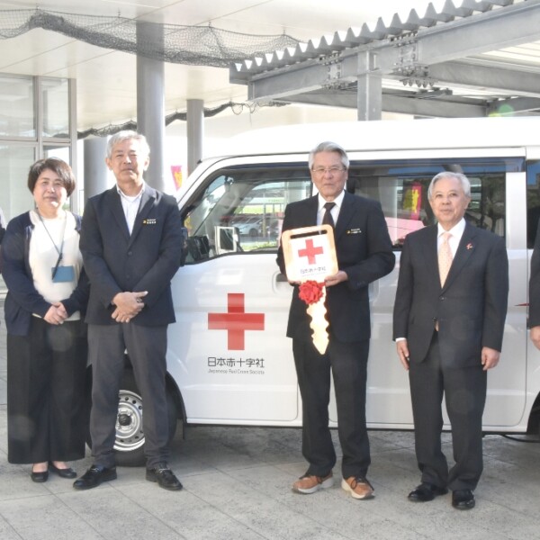 赤十字事業への理解や普及に活用される災害救護連絡車が18日、日本赤十字社沖縄県支部から宮古島市に引き渡された。