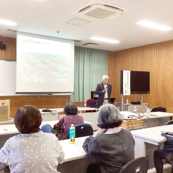 市教育委員会主催で二日にわたり城辺砂川の市歴史文化資料館で開かれている「第14回苧麻糸展示会~島で受け継がれる苧麻(ちょま)績みの手技~」で17日、約10年ぶりに宮古島での沖縄美ら島財団の花城良廣理事長による講演会を実施した。
