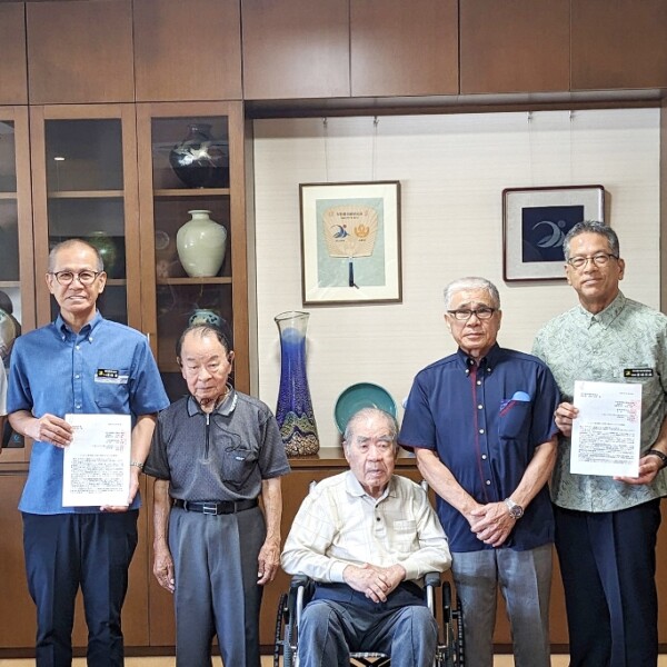 宮古南静園入園者自治会連絡員で宮古退所者の会代表、また(一社)ハンセン病と人権市民ネットワーク宮古の共同代表を務める知念正勝さんらは25日、市役所を訪ね、嘉数登市長と宮城克典教育長に対し、ハンセン病問題への取り組みを要請した。