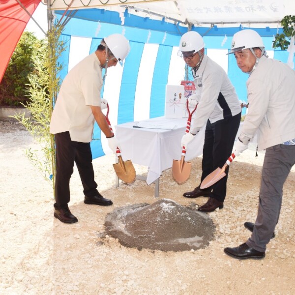 宮古島市(嘉数登市長)は7日、上野野原の「大嶽城址公園展望台建築工事安全祈願祭」を執り行った。