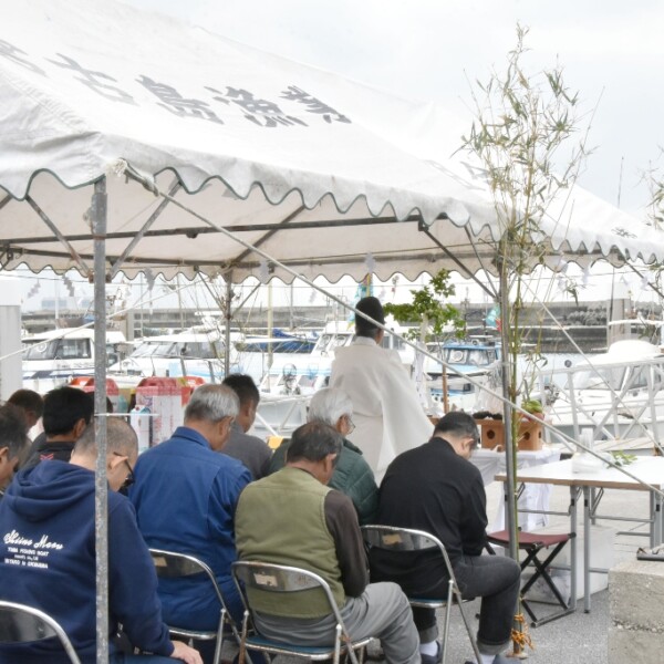 荷川取漁港船主組合(植田弘一会長)は10日、旧歴の1月1日にちなみ漁港内でおはらいと祝詞を上げ今年の航海安全および大漁を願う祈願祭を執り行った。