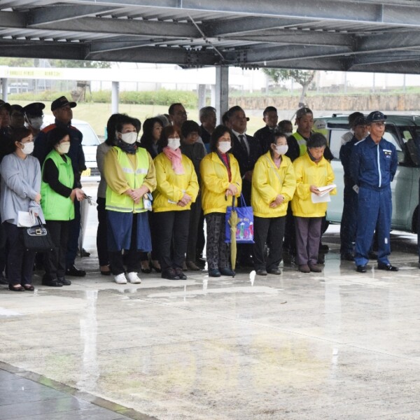 2023年「年末年始の交通安全県民運動宮古地区出発式」(主催・宮古島市交通安全推進協議会)が20日、市役所となりの保健センター前で行われた。