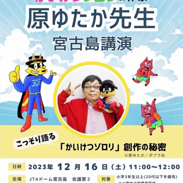 「かいけつゾロリ」シリーズで知られる作家の原ゆたか先生が、ありんこ文庫の10周年記念イベントとして16日、JTAドーム宮古島の会議室2で講演会を行う。